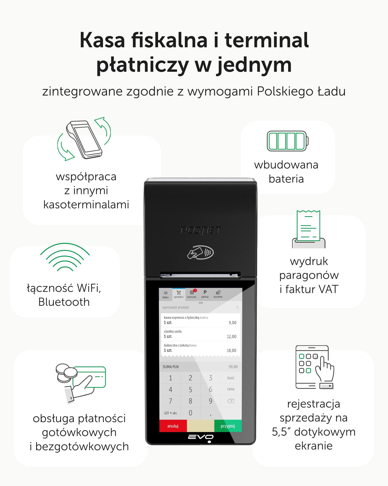 Dla małych biznesówEvo znakomicie sprawdza się w niedużych biznesach, gdzie liczy się szybkość działania, mobilność, a przestrzeń punktu handlowo – usługowego jest ograniczona. W takich warunkach małe, zgrabne i nowoczesne Evo będzie znakomitym wsparcie dla sprzedawcy! |